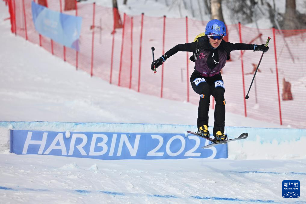 2月12日,次旦玉珍在第九屆亞冬會滑雪登山混合接力決賽中,她當天和隊友布魯爾獲得冠軍。新華社記者 謝劍飛 攝