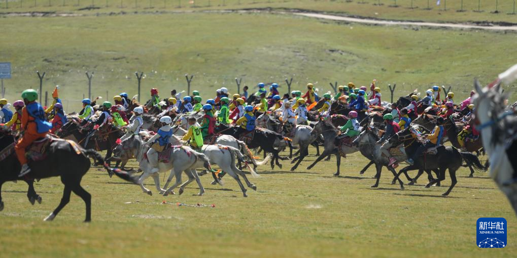 2024年8月12日,騎手在2024年恰青賽馬節(jié)傳統(tǒng)十公里大跑項目中角逐。新華社記者 晉美多吉 攝