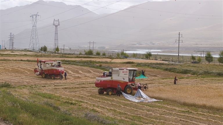 “我家共有37畝農田,10畝種小油菜,27畝種青稞?!必暩骂D玉說,小油菜在前兩天已全部收割完畢,每畝產量達300多斤。從今天起,他們開始收割青稞。家里有4個勞動力,要是放在以前,37畝地的秋收得全家上陣忙一個多月,現在有了機械化作業(yè),短短幾天就能完成所有收割工作,既省時又省力。