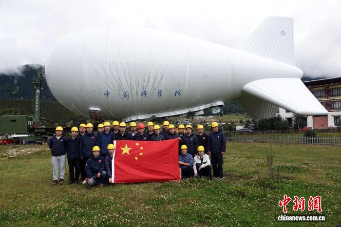 9月18日下午,“極目一號(hào)”浮空艇大氣觀(guān)測(cè)試驗(yàn)完成任務(wù)前相關(guān)測(cè)試工作,項(xiàng)目團(tuán)隊(duì)代表在現(xiàn)場(chǎng)合影。中新網(wǎng)記者 孫自法 攝