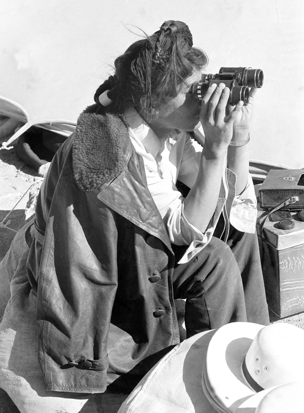 藏北西部過去的“無人區(qū)”,平均海拔5000米,面積為20萬平方公里,因高寒缺氧,氣候惡劣,千百年來一直渺無人煙。1975年,西藏人民政府在這里先后成立了雙湖、文部兩個辦事處,第二年又有一批藏、漢族干部和幾千戶牧民趕著牲畜到這里安家落戶,沉睡千年的荒原從此揭開了開發(fā)建設(shè)的新篇章。過去跟著牛羊后面轉(zhuǎn)的牛羊倌,今天放牧用上了望遠(yuǎn)鏡。這名小伙子一邊放牧,還不時坐下來看書、學(xué)習(xí)、聽錄音,通過望遠(yuǎn)鏡瞭望羊群。 (1987年9月16日發(fā))