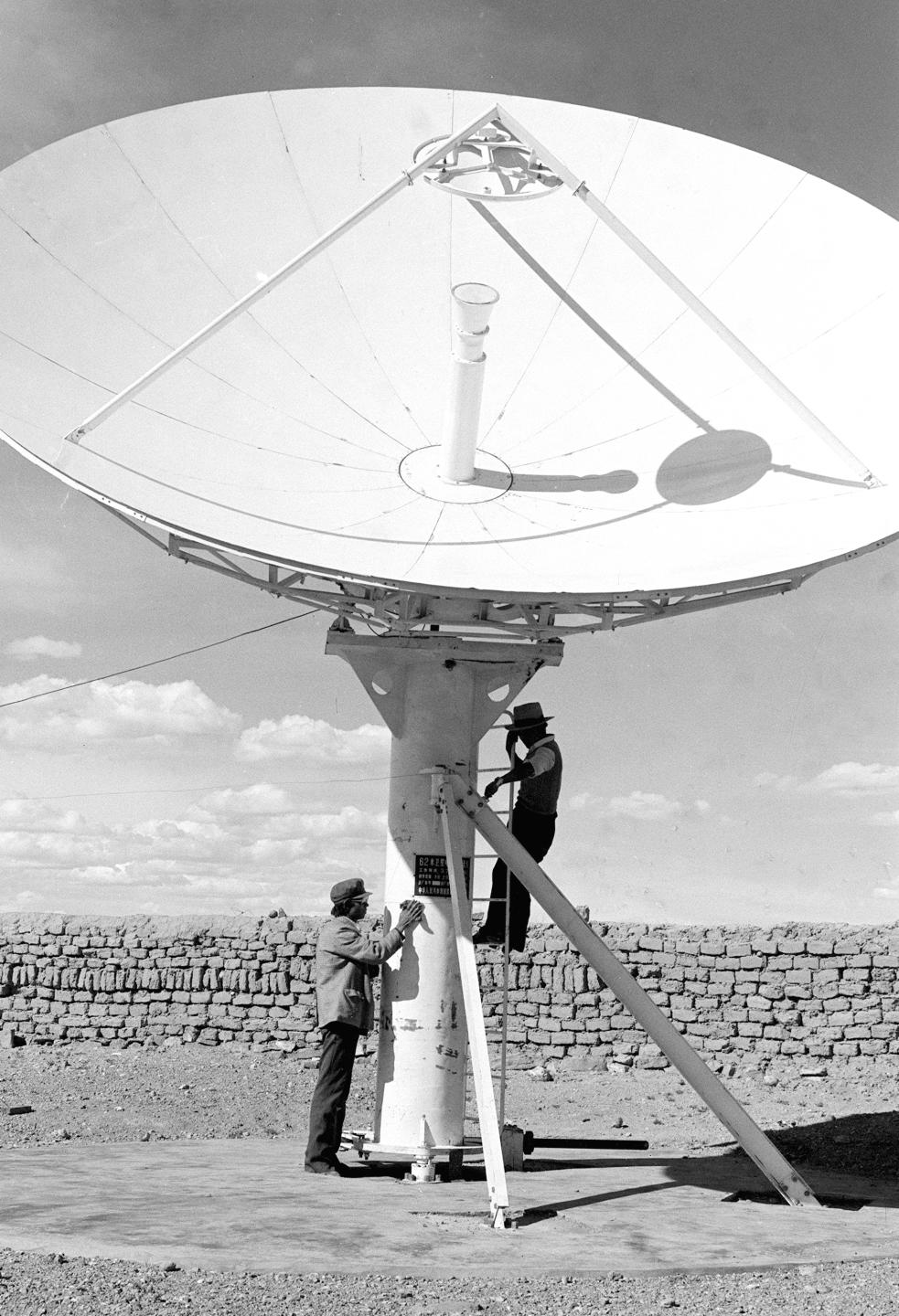 雙湖和文部辦事處在海拔5000米的地方分別建起了衛(wèi)星地面接收站,使當(dāng)?shù)啬撩窨梢允湛串?dāng)天中央電視臺播放的節(jié)目(1987年9月16日發(fā))。