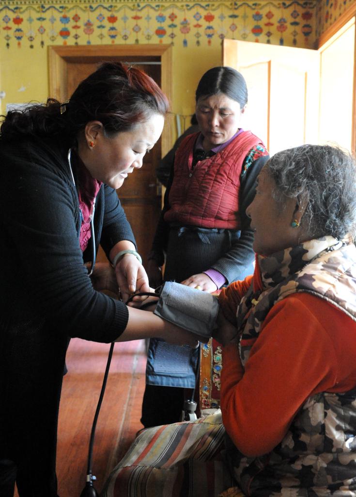 這是雙湖縣醫(yī)生在嘎措鄉(xiāng)為牧民群眾量血壓、診斷疾?。?013年7月27日攝)。