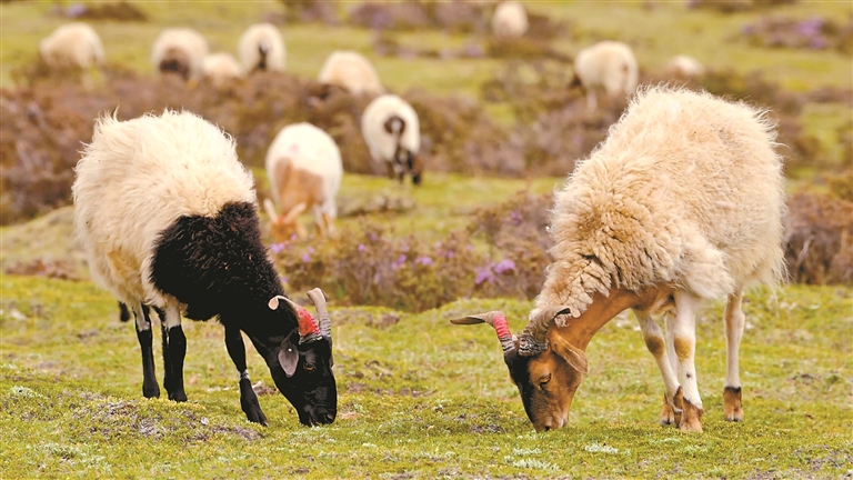 圖為貢覺(jué)縣特有的優(yōu)良畜種阿旺綿羊,成為村民增收致富的穩(wěn)定選擇。