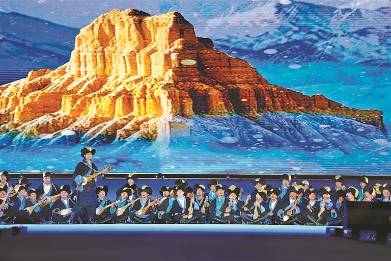 開幕式通過“線上直播+現(xiàn)場觀演”模式,為現(xiàn)場各界來賓、干部群眾及線上觀眾,呈現(xiàn)了一場內(nèi)容豐富、形式多元、內(nèi)涵深刻的視聽盛宴。此次演出時長約80分鐘,投入演職人員300余人次,共呈現(xiàn)13個特色節(jié)目。演出以弘揚(yáng)優(yōu)秀傳統(tǒng)文化和鑄牢中華民族共同體意識為基調(diào),大膽革新藝術(shù)表達(dá)形式,將“音、舞、詩、畫”巧妙融合,并鑲嵌濃郁的阿里地域文化元素,通過多元文化交融的舞臺敘事,生動詮釋中華民族“多元一體、和諧共生”的深刻內(nèi)涵,實現(xiàn)歷史與人文的激情碰撞。
