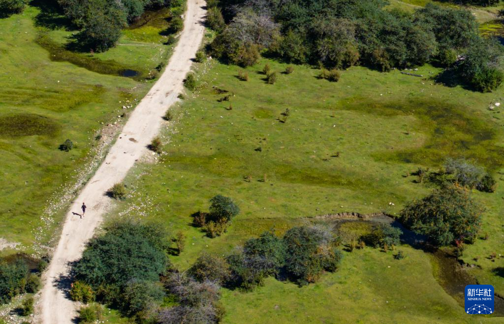 9月27日,參賽選手在賽道上奔跑(無人機照片)。新華社記者 格桑朗杰 攝