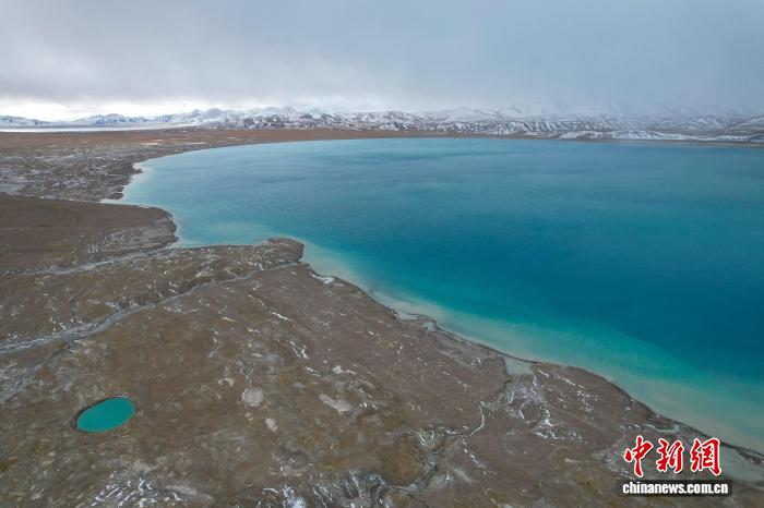 美馬錯位于西藏自治區(qū)阿里地區(qū)日土縣與改則縣交界處,湖面海拔4920米,面積140.5平方公里。據(jù)悉,該湖地處昆侖山南麓。近日,中新網(wǎng)記者自駕新藏公路北線途經(jīng)該湖,航拍畫面顯示,湖泊呈帶狀鋪展,湖水自岸邊向中心顏色漸次加深,遠處與天色交融成墨綠。周邊群山覆雪,湖泊、荒灘、雪山構成一幅天地共繪高原藍的美麗景象。圖為10月9日,美馬錯與遠處的雪山。江飛波 攝