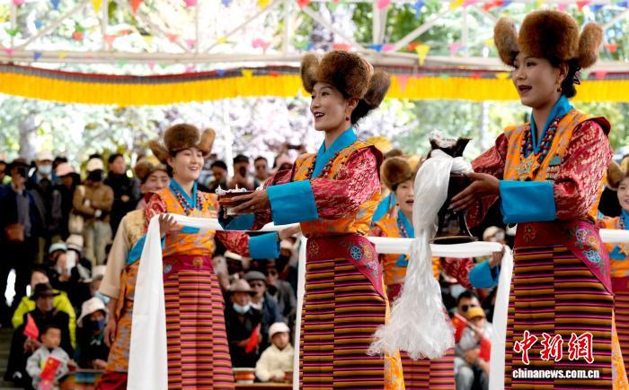 10月19日,“格?;ū崩_市第六屆縣(區(qū))藝術(shù)團(tuán)文藝調(diào)演頒獎(jiǎng)活動(dòng)在布達(dá)拉宮腳下的宗角祿康公園舉行。現(xiàn)場,拉薩市各縣(區(qū))藝術(shù)團(tuán)帶來精彩節(jié)目。圖為文藝調(diào)演頒獎(jiǎng)活動(dòng)上的文藝表演。中新社記者 李林 攝