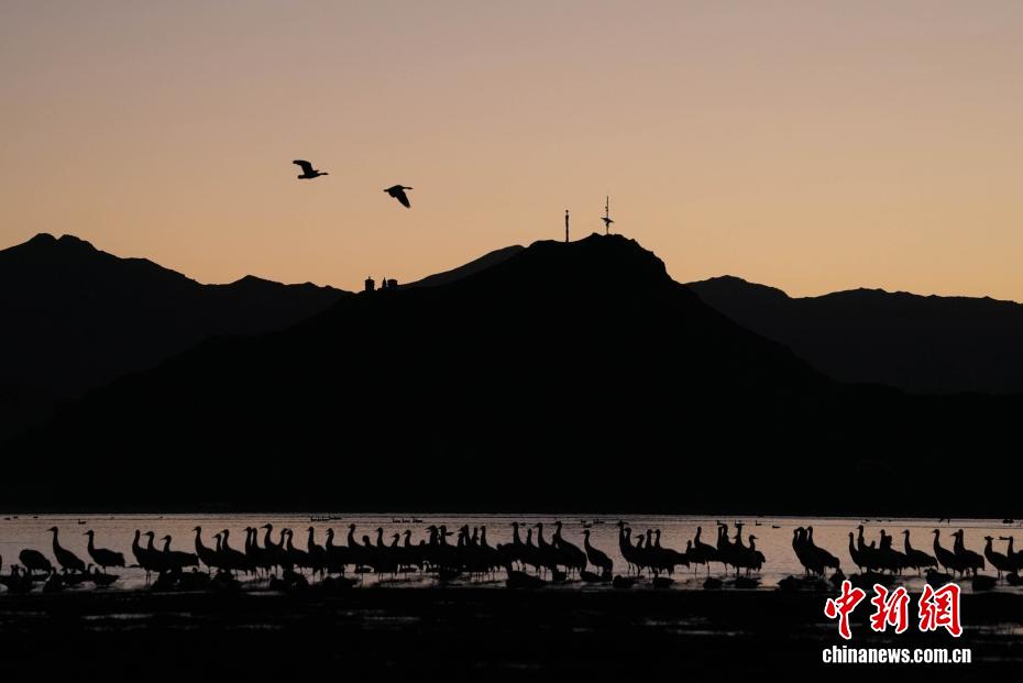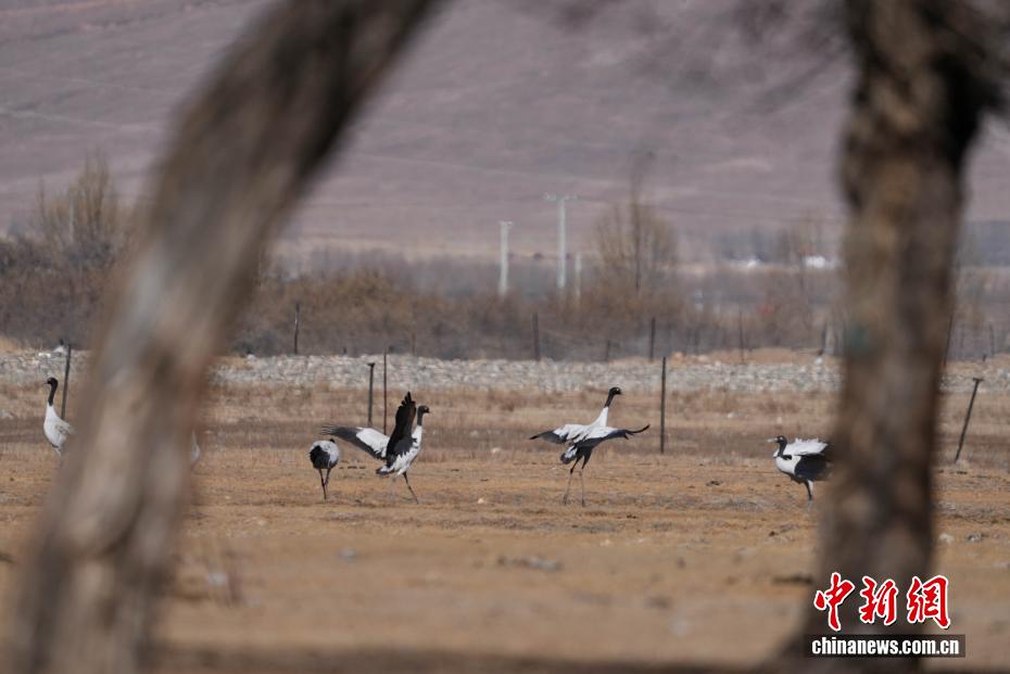 11月26日,位于西藏自治區(qū)拉薩市林周縣黑頸鶴自然保護區(qū)內(nèi),大批越冬黑頸鶴現(xiàn)身卡孜水庫及田間地頭,悠閑覓食、嬉戲。這些遠道而來的黑頸鶴,將在此棲息至次年三四月份。黑頸鶴為中國國家一級保護動物,也是唯一在高原生活、繁殖的鶴類。近年來,隨著當?shù)厣鷳B(tài)保護力度持續(xù)加大,前往林周縣越冬的黑頸鶴等候鳥數(shù)量逐年增多。圖為在林周縣卡孜水庫拍攝的黑頸鶴。貢確 攝