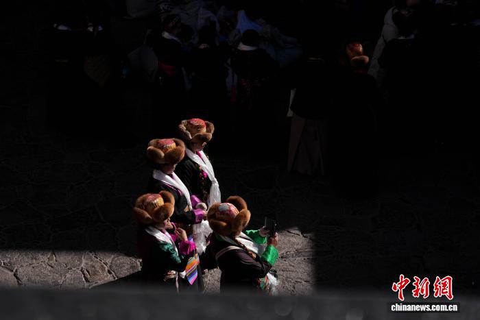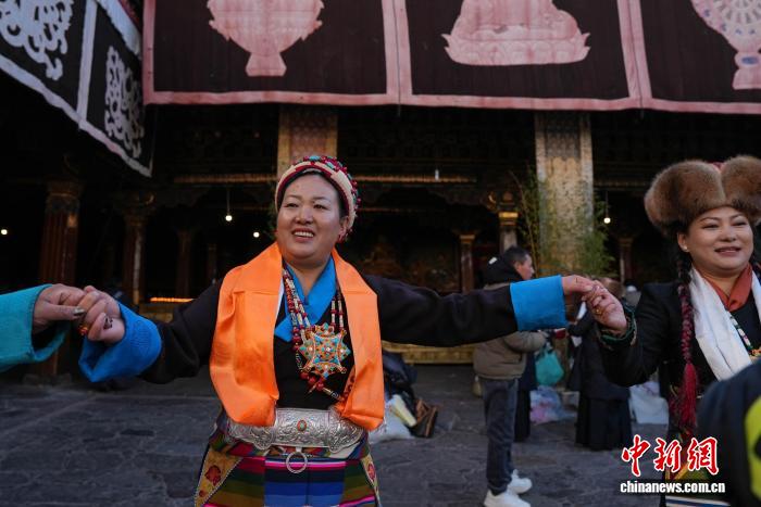 圖為白拉姆節(jié)臨近之際,信眾在大昭寺內(nèi)敬獻供品后載歌載舞的場景。貢確 攝