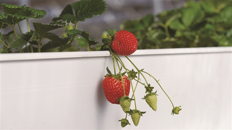 冬日的墨竹工卡,寒意已悄然浸遍山野??稍谀窆たh現(xiàn)代農(nóng)業(yè)示范園的連棟溫室中,卻藏著一整個春天——12月2日,當(dāng)記者腳步踏入這座占地10畝的現(xiàn)代化溫室,視線立刻被眼前的色彩俘獲:不是尋常草莓的單調(diào)赤紅,而是嬌嫩粉、純凈白、柔粉漸變的果實,像被打翻的調(diào)色盤般,星星點點嵌在翠綠葉片間,甜香混著溫潤空氣撲面而來。