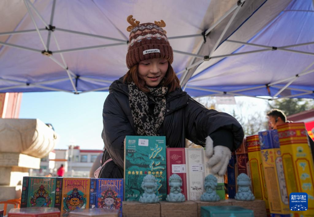 12月10日,商戶在拉薩市宗角祿康公園的供銷大集上整理商品。新華社記者 晉美多吉 攝
