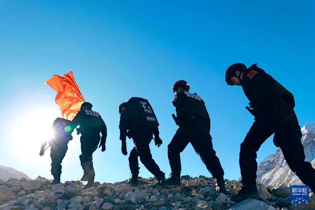 珠峰邊境派出所的移民管理警察在珠峰核心區(qū)巡邏(12月24日攝)。新華社記者 周昱龍 攝