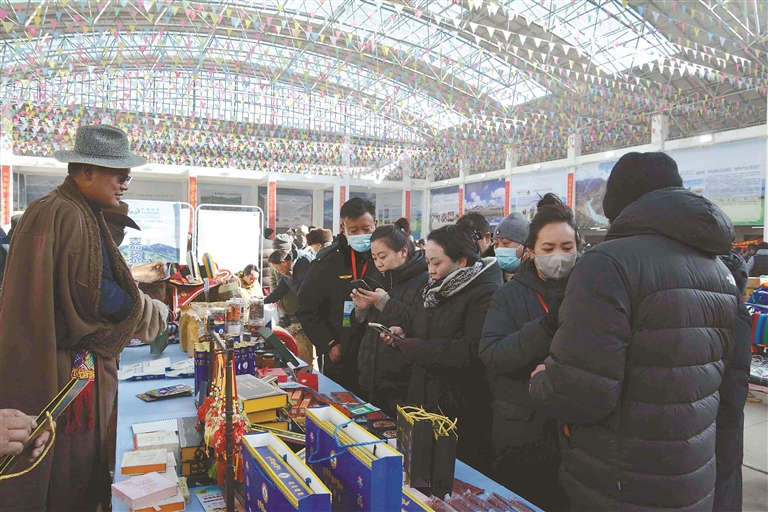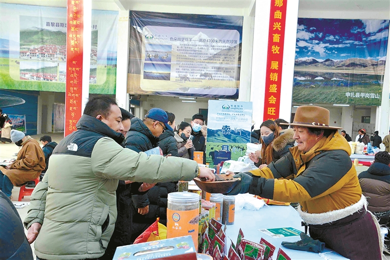 這次展銷會不僅線下熱鬧,線上也同樣火爆。為了讓各類產(chǎn)品走得更遠,展銷會特意搭建起“線上直播帶貨+線下現(xiàn)場選購”的雙線銷售通道,一邊是線下市民現(xiàn)場挑、現(xiàn)場買,新鮮看得見、品質(zhì)摸得著;一邊是主播對著鏡頭,向全國網(wǎng)友推介那曲好物,讓遠在千里之外的消費者也能品嘗到那曲味道。同時,展銷會還邀請電商平臺、采購商代表和參展商精準(zhǔn)對接,幫本土農(nóng)畜產(chǎn)品打通銷路,再也不愁“酒香巷子深”;積極引導(dǎo)機關(guān)、企事業(yè)單位及社會各界參與消費幫扶,以“以購代扶”“以買促銷”的方式助力本土產(chǎn)業(yè)發(fā)展,在全市形成“人人支持本土產(chǎn)業(yè)、人人參與鄉(xiāng)村振興”的濃厚氛圍。