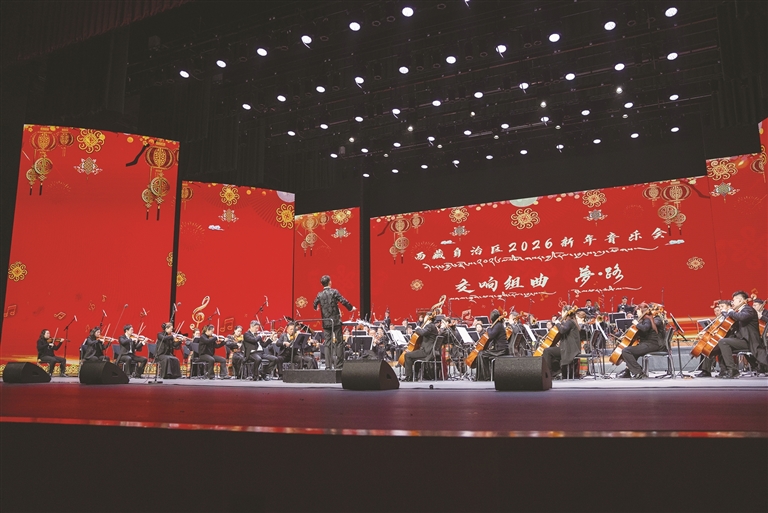 2025年12月30日晚8時,西藏自治區(qū)2026新年音樂會在西藏大劇院奏響發(fā)展新聲。本場音樂會由西藏自治區(qū)黨委宣傳部指導(dǎo),自治區(qū)文化和旅游廳、西藏廣播電視臺主辦,西藏自治區(qū)歌舞團(tuán)、藏劇團(tuán)及西藏演藝有限責(zé)任公司承辦,特邀中央歌劇院指導(dǎo),西藏自治區(qū)歌舞團(tuán)、藏劇團(tuán)與中央歌劇院交響樂團(tuán)聯(lián)合演出,以“以古照今 樂動新年”為主題,將歷史厚重與時代溫度熔于一爐,為現(xiàn)場觀眾獻(xiàn)上兼具精神洗禮與藝術(shù)享受的聽覺盛宴,以文藝之姿迎接2026年的到來。