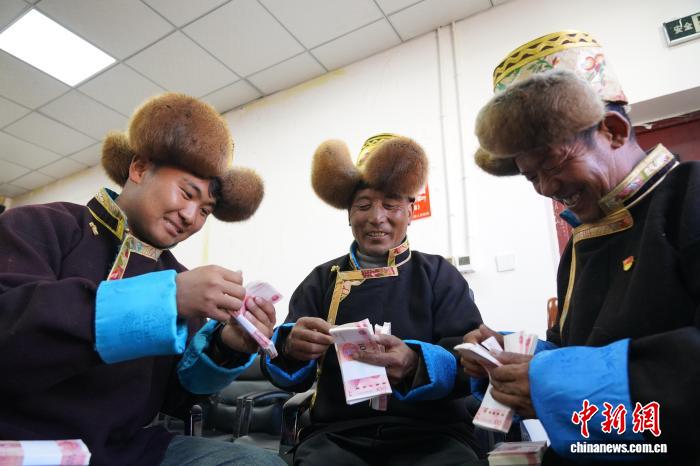 “加麻鄉(xiāng)昌嘎村161277元,加麻鄉(xiāng)白松村159651元,下水鄉(xiāng)下水村111405元……”瓊結(jié)縣各村代表依次上臺(tái),把寫(xiě)有本村名字和金額的紅色牌子舉到胸前,每個(gè)人的臉上洋溢著笑容。