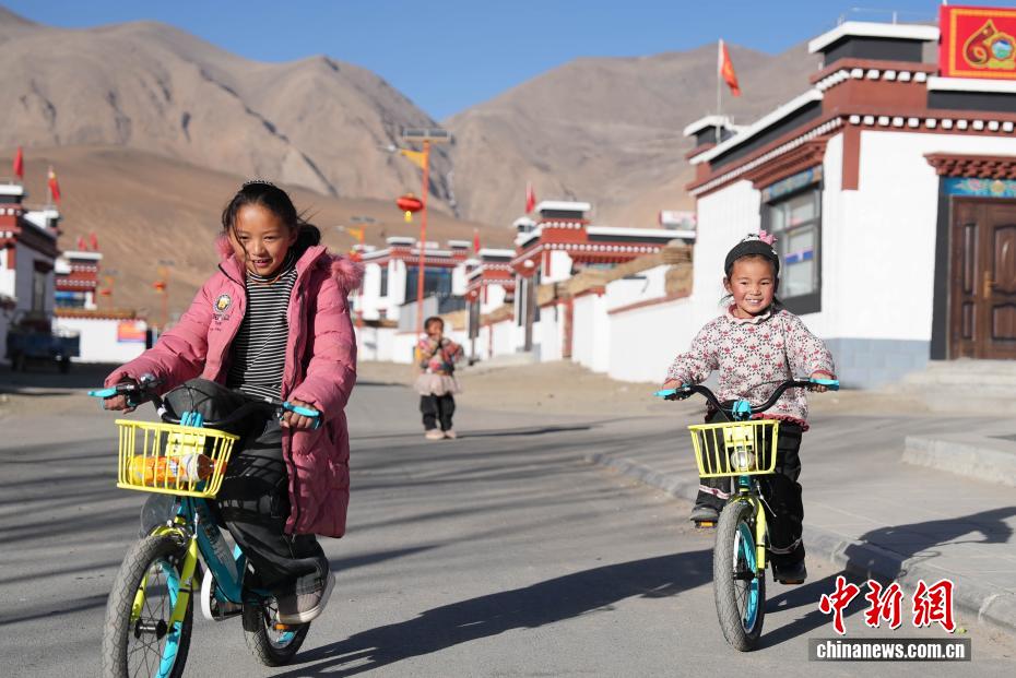 2025年1月7日,西藏日喀則市定日縣發(fā)生6.8級地震,造成重大人員傷亡。地震發(fā)生后,30天內完成民房重建規(guī)劃、選址、設計,90天內完成災后恢復重建總體方案編制和報審,震后100天內進入項目全面實施階段,220天實現(xiàn)災后恢復重建首批入住目標,295天實現(xiàn)重建民房、維修加固民房基本建成并交付受災民眾,在海拔4300米以上極度缺氧、建材短缺、施工力量薄弱的地震災區(qū),創(chuàng)造了“當年受災、當年入住”的重建奇跡。如今,民眾生產生活恢復秩序,他們將在新居內迎接第一個日喀則農事新年。圖為2026年1月5日,定日縣長所鄉(xiāng)森嘎村,兩個小女孩在新房前騎車。貢確 攝