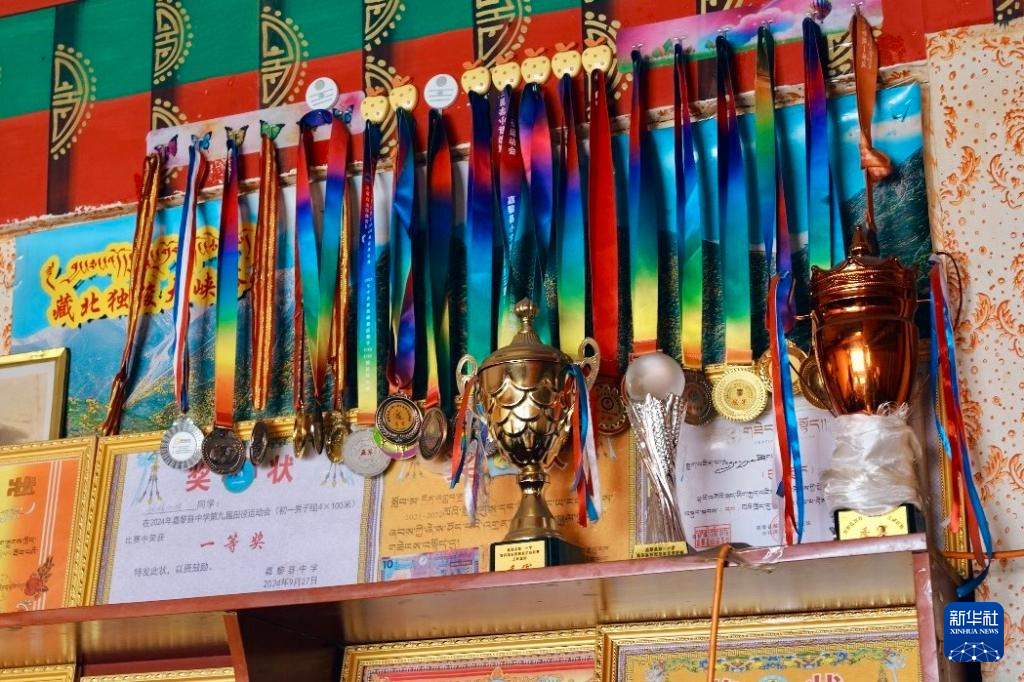 如今,頓珠嘉措家里的柜子上擺滿了他和哥哥獲得的獎杯和獎牌,哥哥被選入那曲市青少年滿天星訓(xùn)練營,有更多的機會到外面開拓眼界、學(xué)習提升,也成為了頓珠嘉措的榜樣。正在上初二的他,也有了自己的目標,希望能考上區(qū)外的大學(xué),當一名體育老師,服務(wù)家鄉(xiāng)。