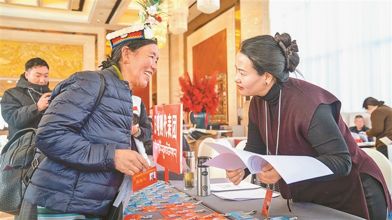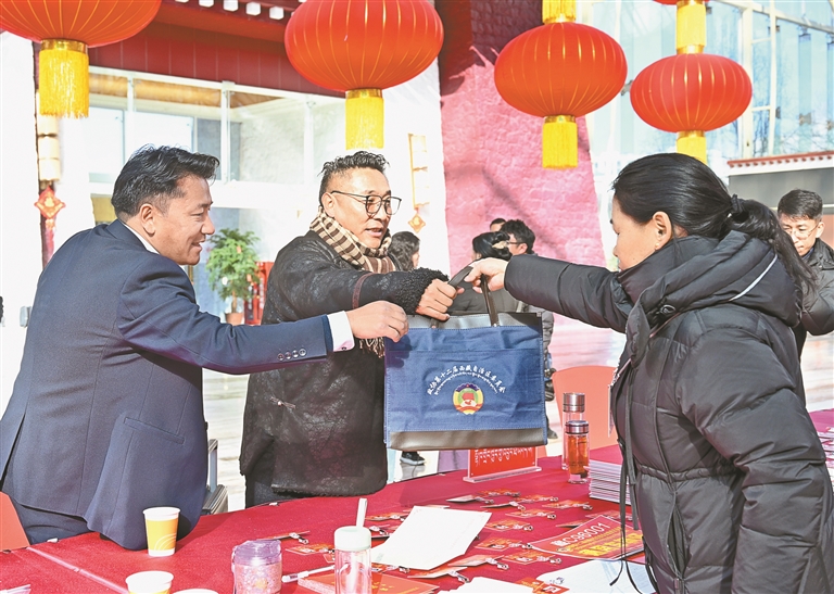 人大代表在駐地領(lǐng)取證件和會議材料。記者 歐珠次仁 平措諾吉 攝