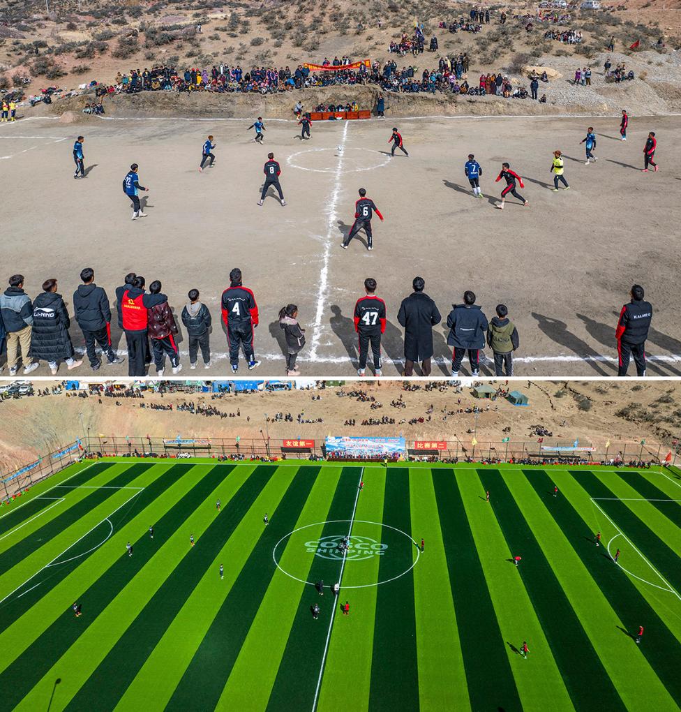 “以前一場比賽下來,球鞋球襪里全是土,但是大家最期待的還是新年前的足球賽?!?021年嘎瑪加永燈培大學(xué)畢業(yè)后回到家鄉(xiāng)工作,在一座標(biāo)準(zhǔn)化足球場踢球是他那時最大的心愿。