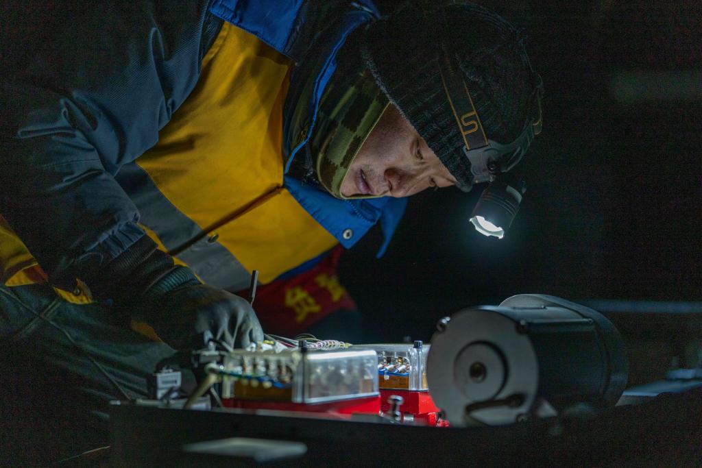 “先確認(rèn)斷路器狀態(tài)。”王富生半蹲在送電端箱盒前,凍得發(fā)紫的手緩緩打開(kāi)電纜盒。成格樂(lè)的頭燈照亮箱盒內(nèi)密密麻麻的端子排,他用內(nèi)六角扳手將早已斷裂的小枕木和銹蝕的過(guò)軌卡扣逐一取下。王富生隨即將新的箱盒引接線安裝固定好。