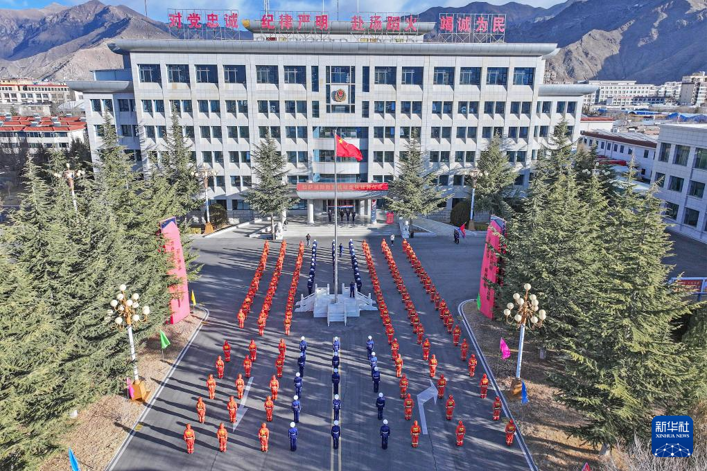 這是2月5日拍攝的拉薩消防救援機(jī)動(dòng)支隊(duì)掛牌儀式現(xiàn)場(chǎng)。新華社發(fā)(鄭龍 攝)