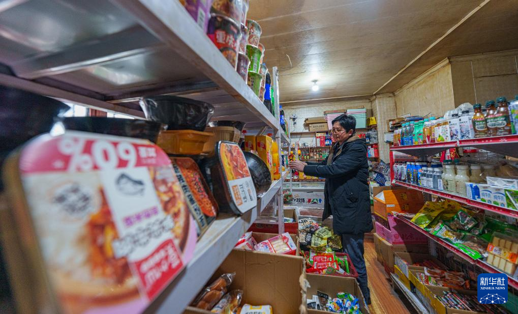 2月5日,玉麥鄉(xiāng)一家超市的老板在整理貨架。新華社記者 丁增尼達(dá) 攝