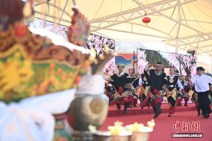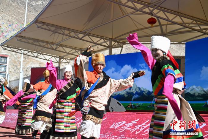圖為羊湖民間藝術(shù)團演員表演舞蹈《嘎拉村的歡笑》。中新社記者 貢嘎來松 攝