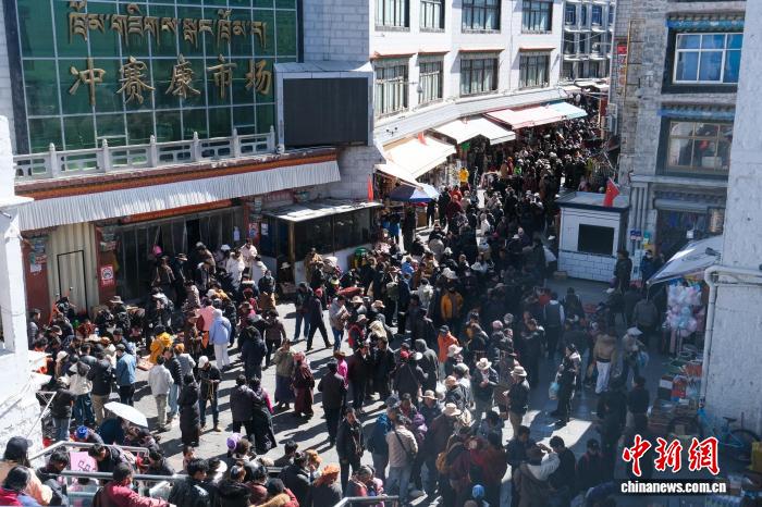 2月13日,拉薩傳統(tǒng)年貨市場沖賽康周邊人流如織。中新社記者 江飛波 攝