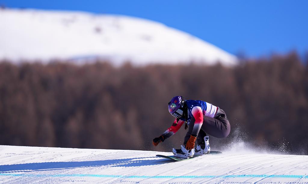 13日,米蘭冬奧會單板滑雪女子障礙追逐比賽在這里進(jìn)行。22歲的藏族姑娘擁青拉姆滑過終點線后停住,扶了扶雪鏡,站著緩了一會兒。她沒有立刻去看成績,而是抬頭望向剛剛滑下來的那條賽道——半壁、跳臺、彎道一段段延伸向山腳。