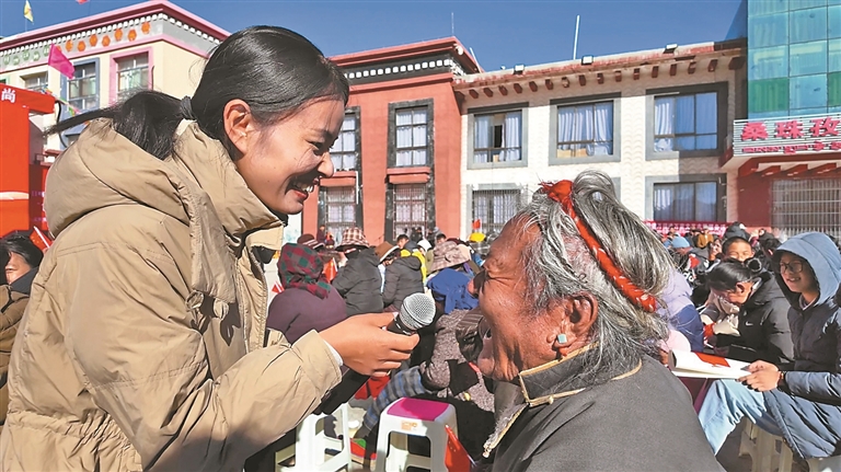 在定結(jié)縣,自治區(qū)“十佳基層宣講員”、日喀則市“珠峰百姓名嘴”、“雪蓮花宣傳隊(duì)”隊(duì)員拉珍連續(xù)主講四場(chǎng)宣講報(bào)告會(huì),以“身邊變化”宣講自治區(qū)成立60年來的發(fā)展成就,村民們聽得認(rèn)真、記得仔細(xì),互動(dòng)環(huán)節(jié)更是踴躍參與。許多群眾在宣講結(jié)束后仍圍著拉珍交談,久久不愿散去,“這樣的宣講接地氣、聽得懂、記得牢,希望常來?!?/p>