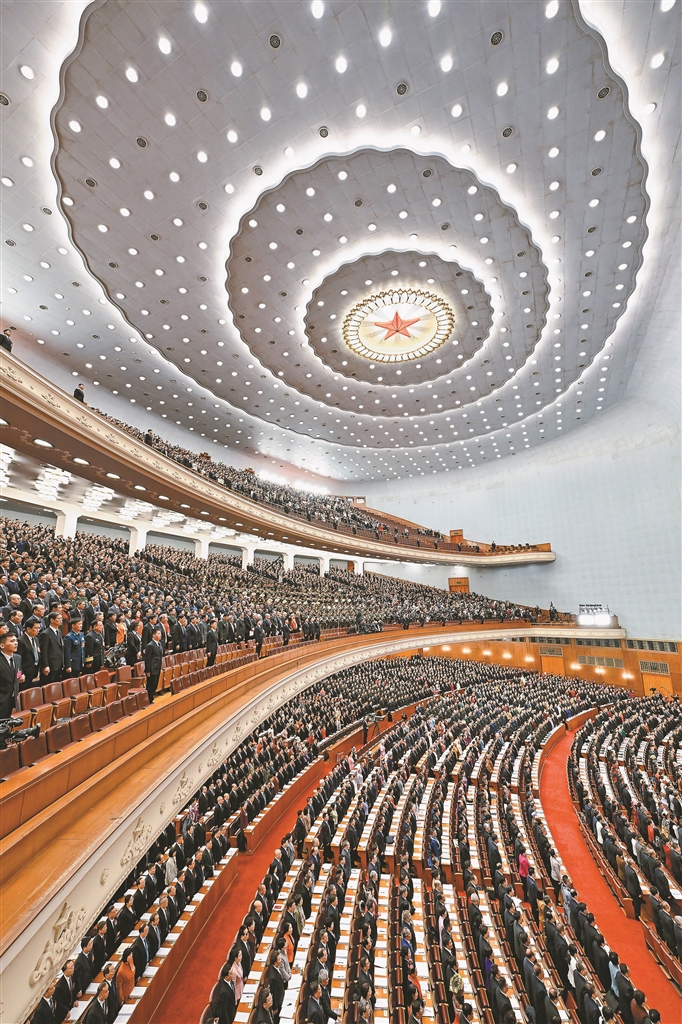 9時(shí),人民大會(huì)堂大禮堂內(nèi)燈光璀璨,雄壯的國(guó)歌響起,大會(huì)正式開(kāi)幕。