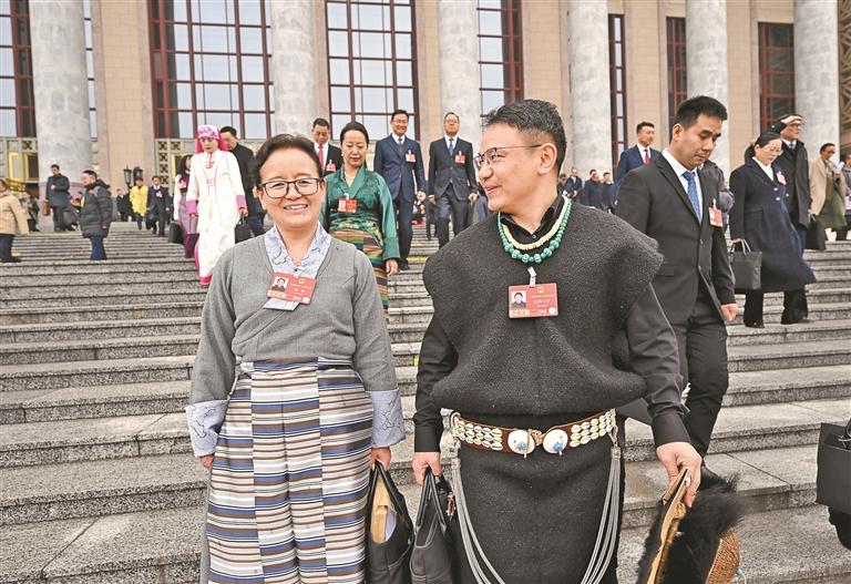 ——西藏全國(guó)人大代表出席十四屆全國(guó)人大四次會(huì)議開(kāi)幕會(huì)側(cè)記
