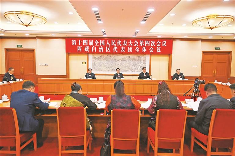 3月9日,西藏代表團(tuán)舉行全體會(huì)議,審議全國(guó)人大常委會(huì)工作報(bào)告、關(guān)于法律清理工作情況和有關(guān)法律和決定處理意見的報(bào)告。