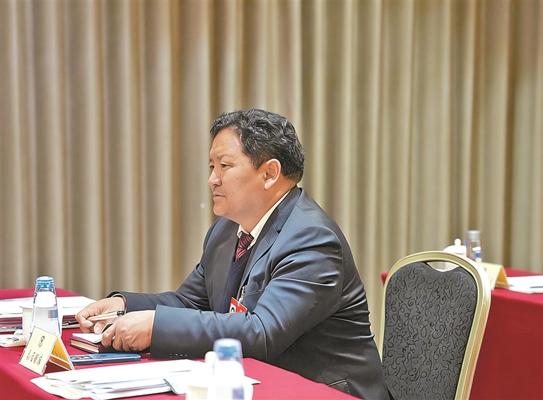 圖為全國政協(xié)委員扎西頓珠。記者 陶玥 攝