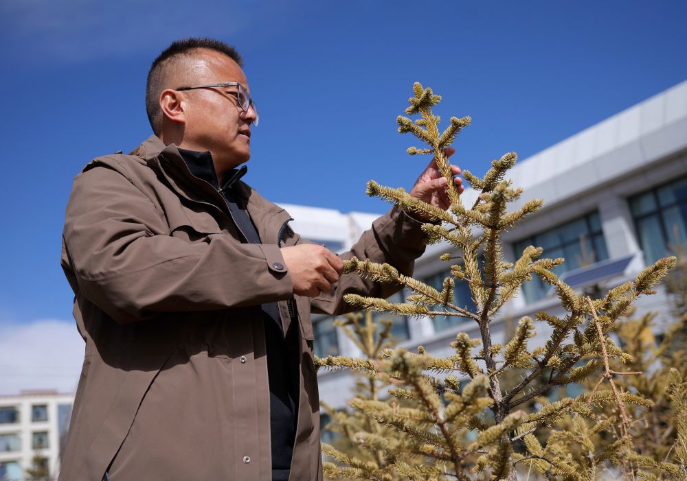 3月20日上午10點(diǎn)30分,扎西像往常一樣來(lái)到市科技局的院子里,仔細(xì)查看樹木的長(zhǎng)勢(shì)。他彎腰伸手,摸了摸樹的葉子和枝條,又踩了踩樹下的土壤?!霸蕉闆r總體穩(wěn)定,也有了返青跡象,可以開始澆水、施肥了?!痹餍老驳卣f(shuō)。