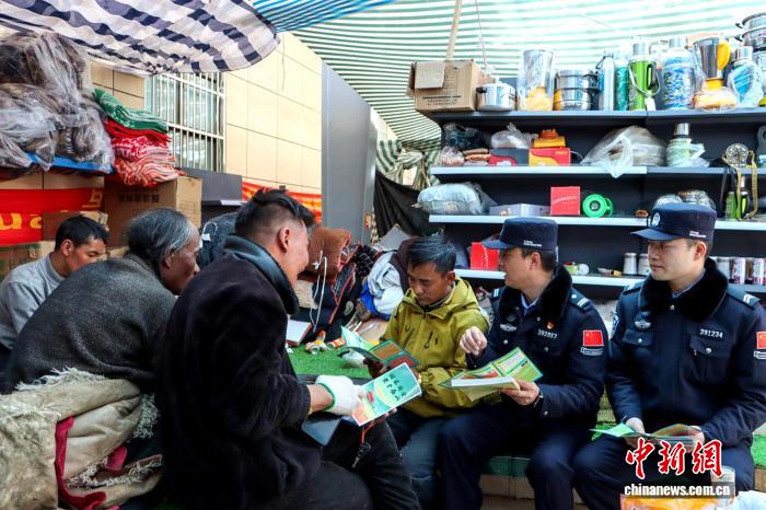 圖為里孜邊檢站民警走進(jìn)商鋪介紹國家安全教育相關(guān)法律知識。劉海東 攝