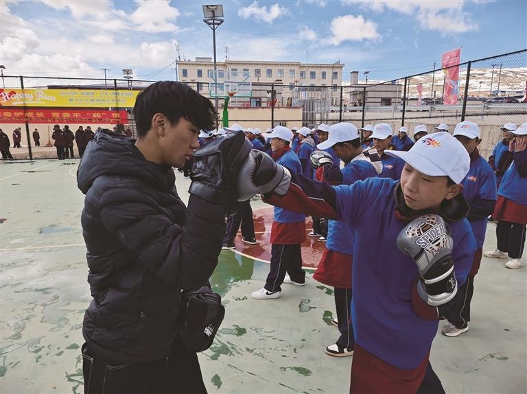 活動堅持榜樣引領(lǐng)+多元育人相結(jié)合,著力提升活動育人實效。特邀西藏優(yōu)秀滑雪運動員次仁占堆、扎西旦珍親臨現(xiàn)場,結(jié)合自身成長、艱苦訓(xùn)練、奮勇爭先的運動經(jīng)歷,向青少年分享體育追夢歷程與拼搏精神,以身邊榜樣激勵青少年樹立運動興趣、磨礪意志品格、堅定理想信念。同時,聯(lián)動自治區(qū)禁毒辦,組織那曲市、聶榮縣禁毒工作骨干開展禁毒專題宣傳講座,通過科普禁毒法律法規(guī)、講解毒品危害、普及防毒知識,將體育健身與禁毒安全教育深度融合,引導(dǎo)青少年在強身健體的同時,牢固樹立防毒拒毒意識,守住健康成長底線,實現(xiàn)體育賦能與法治教育協(xié)同推進?;顒舆€為學(xué)校捐贈了體育器材。