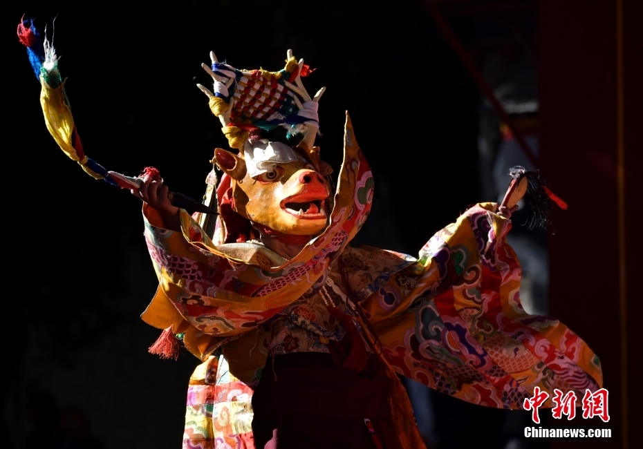 西藏扎什倫布寺上演國家級非遺傳統(tǒng)跳神活動