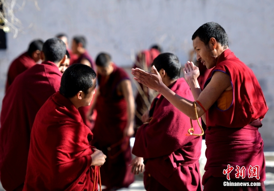 12月4日,扎什倫布寺僧人辯經(jīng)。中新社記者 李林 攝