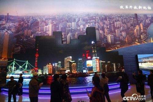 觀眾駐足觀看慶祝改革開放40周年大型展覽(圖片來源:央視網(wǎng))