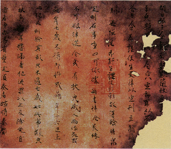 唐律在中國法制史上居于承前啟后的重要地位,以“得古今之平”著稱于世。《唐律疏議》在《貞觀律》基礎(chǔ)上修訂而成,為大唐盛世奠定了法律基石,充分體現(xiàn)了中國古代法律制度的水平、風(fēng)格和基本特征,成為中華法系的代表性法典之一。圖為《唐律疏議》殘片(局部)。