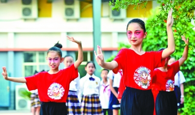 文化興國(guó)運(yùn)興,文化強(qiáng)民族強(qiáng)。圖為河北省石家莊市裕華西路小學(xué)舉辦以“弘揚(yáng)戲曲藝術(shù) 傳承經(jīng)典國(guó)粹”為主題的校園戲曲節(jié)活動(dòng)。新華社發(fā)