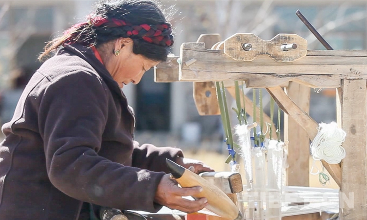 圖為嘎日正在編織邦典 圖片由旦增卓嘎提供