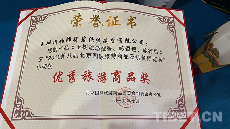 中國西藏網(wǎng)訊 近日,在第八屆北京國際旅游商品及旅游裝備博覽會上,來自青海玉樹藏族自治州的省級非物質(zhì)文化遺產(chǎn)代表性項(xiàng)目柏郎祥碧傳統(tǒng)藏香系列產(chǎn)品玉樹旅游藏香、藏香包、旅行香榮獲優(yōu)秀旅游商品獎。