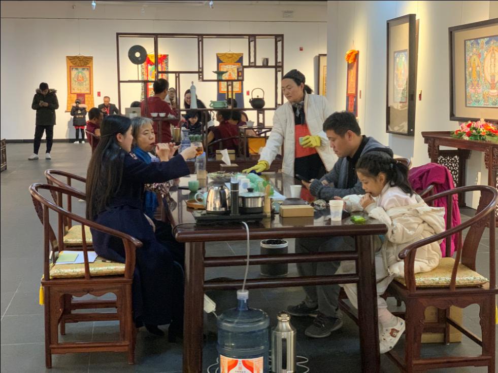 本次展覽以飲藏茶、品藏香、觀壇城、賞唐卡為主題,從多角度展示了我國藏族藝術(shù)源流,探討了藏文化的豐富內(nèi)涵?,F(xiàn)場共計(jì)300余位嘉賓參加活動。