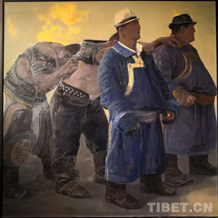 圖為油畫作品《蒙古族博克文化》 作者:胡日查