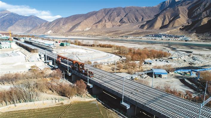 日前,伴隨著西藏山南市桑日車站四線特大橋的最后一片T梁穩(wěn)穩(wěn)地架設(shè)到橋臺(tái)上,標(biāo)志著拉林鐵路首座四線特大橋架設(shè)完成,正式進(jìn)入全線第五個(gè)前期開(kāi)通站——桑日車站。