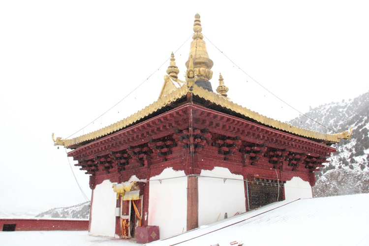 類烏齊寺已有700多年歷史,查杰瑪大殿為類烏齊寺主體建筑,坐西朝東,建筑主體呈四方形,高48米、建筑面積3000余平方米,造型獨(dú)特,宏偉莊嚴(yán),無(wú)論外觀,還是內(nèi)部形制,都巧妙地融合了中國(guó)藏式、漢式以及尼泊爾建筑風(fēng)格。大殿高三層,層層收攏,一層為厚約2米的土墻,外涂紅、白、黑三色豎形條紋,因此又被稱為“花殿”。圖為冰天雪地中的類烏齊寺查杰瑪大殿 攝影:鄭朔