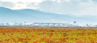 秋季的迪慶香格里拉機(jī)場鮮花簇?fù)?。葉傳增 李 謹(jǐn)攝影報(bào)道